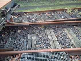 Die auszutauschenden Holzsschwellen sind morsch und zum Teil zusätzlich durch eine Entgleisung vor einigen Jahren geschädigt